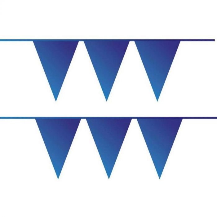 Deze vrolijke blauwe vlaggenlijn is een leuke versiering voor jouw feest en zijn omdat ze van kunststof zijn zowel binnen als buiten te gebruiken als decoratie.